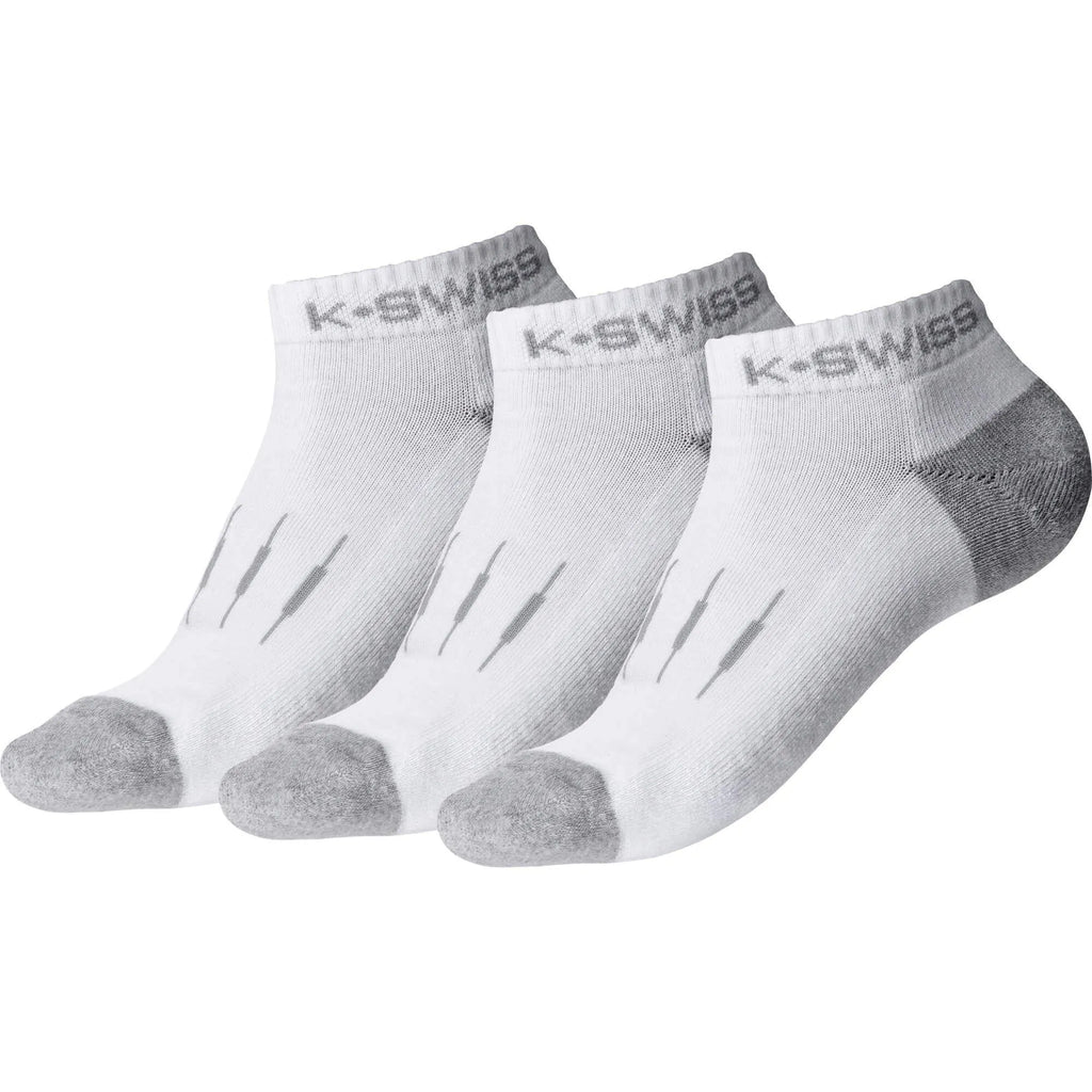 The K-Swiss low cut socks are sporty and have a comfortable fit. The breathable material keeps the feet comfortable and dry.