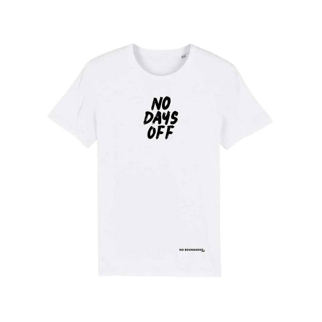 Our stylish No Days Off t-shirt for him and her is here to inspire you to never give up! Every time you look down, you'll be reminded to keep pushing and never take a day off!