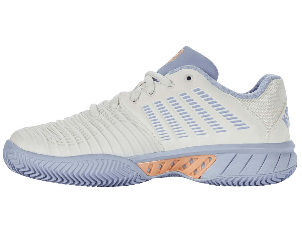 Express Light 3 HB is a lightweight tennis shoe designed for on-court performance and a great level of comfort. As the updated model of its successful predecessor, the upper features DuraWrap Flex, a newly designed molded RPU cage that provides flexible support and drag protection. On the inside, a well-padded ankle collar provides comfort and stability while a die-cut foam sock liner adds responsive cushioning underfoot. The Express Light 3 has HB outsole featuring deeply grooved herringbone patterns for exceptional traction on clay court surfaces.